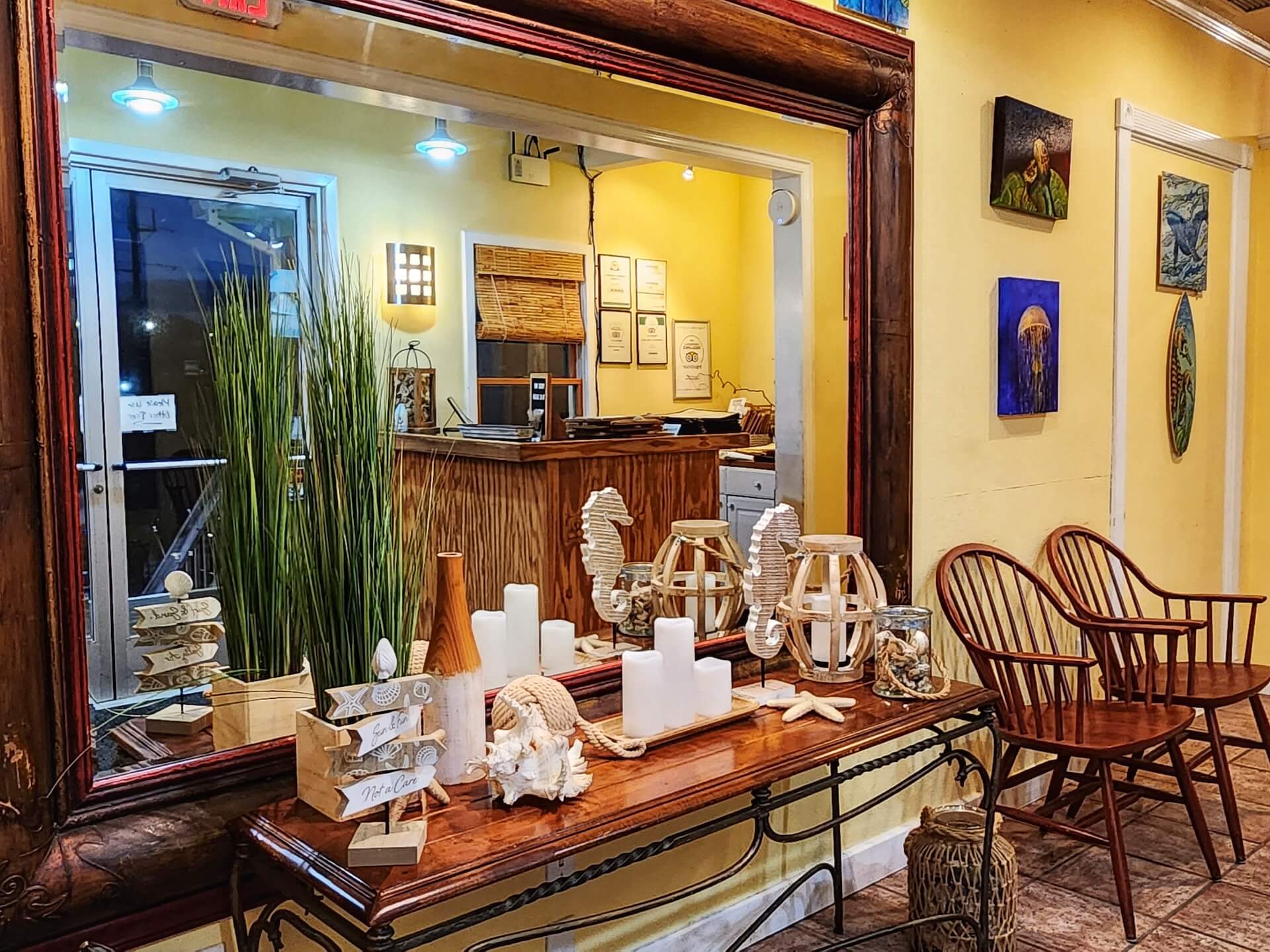 Rusty’s Surf & Turf is located in Buxton, NC, just two miles south of the entrance to Cape Hatteras Lighthouse. We’re proud to offer fine dining in a colorful and casual atmosphere. We feature local seafood with global flavor, plus a full bar complete with craft cocktails, craft beer and wine. Dine indoors or outside on our porch. We serve dinner Wednesday through Sunday nights. Reservations are recommended, but not required.