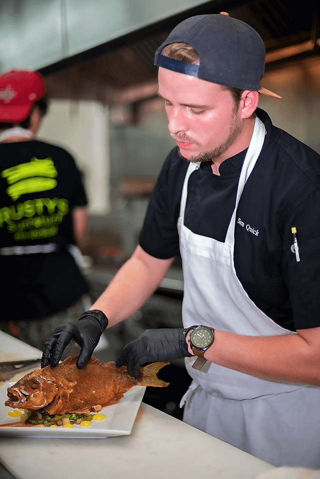 Rusty is not just a chef, but also a surfer who craves surf travel and the experience of discovering new food. His passion for adventure and his commitment to his craft are what make Rusty’s Surf and Turf such a unique and special place. Whether you’re a seafood lover or a steak aficionado, Rusty has something for everyone at his Hatteras restaurant.